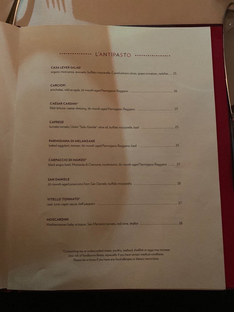 Introducing the menu at Casa Lever, a luxurious Italian lounge located in New York City. Offering a variety of options, Casa Lever caters to those seeking upscale, classy dining experiences. From the exquisite Il Tiramisu Mascarpone to the flavorful Hazelnut Gianduia, their dessert selection is a must-try. In La Nostra Caffetteria, enjoy a range of espresso variations and brewed coffee, perfect for a mid-day pick-me-up. Tea & Infusions feature unique blends like Sogno D Amore and Menta, offering a soothing and refreshing experience. With impeccable service and creative, flavorful dishes, Casa Lever is a top choice for a memorable dining experience. Experience the beauty and elegance of Casa Lever while indulging in their delicious Italian cuisine.